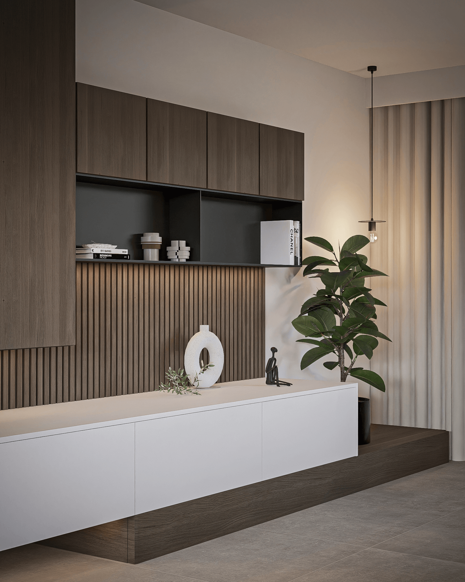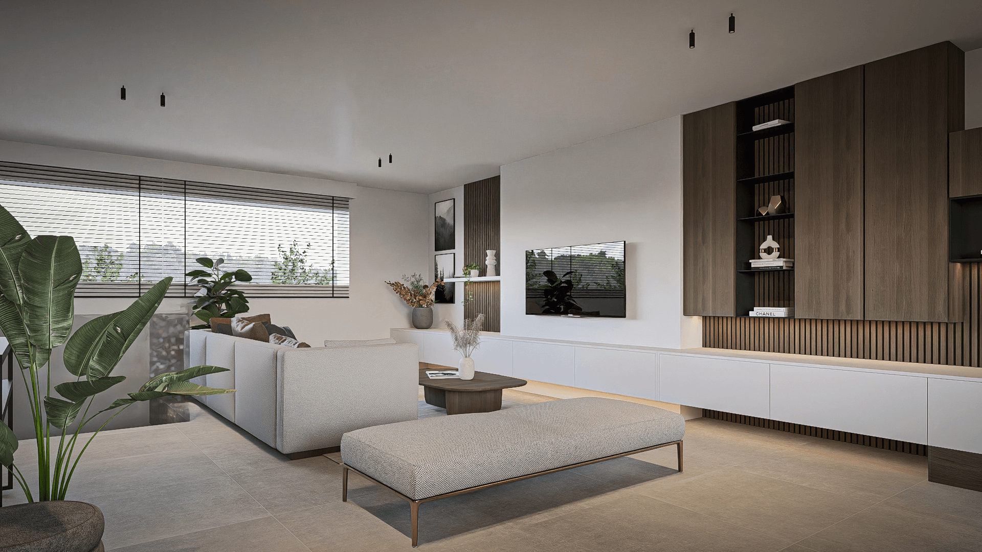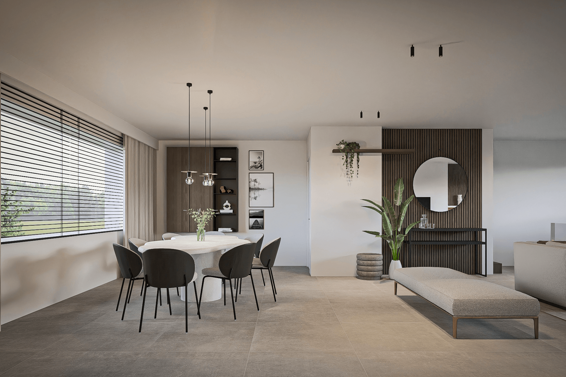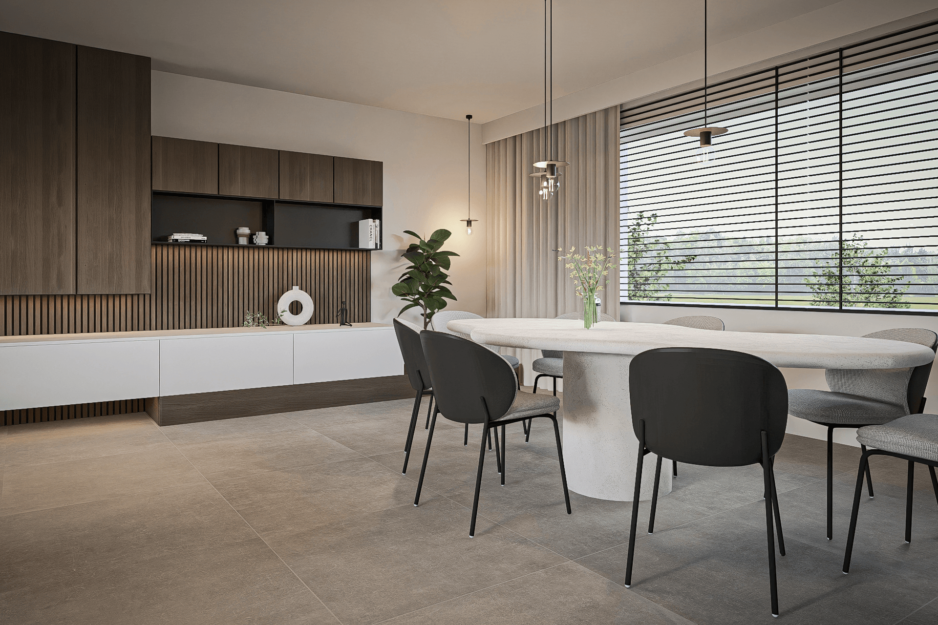 De klanten twijfelden nog tussen donker hout en licht hout, dus maakte ik aangepaste renders om beide opties te laten zien. Het resultaat is een warm en evenwichtig ontwerp waarin maatwerk en gezelligheid samenkomen.
