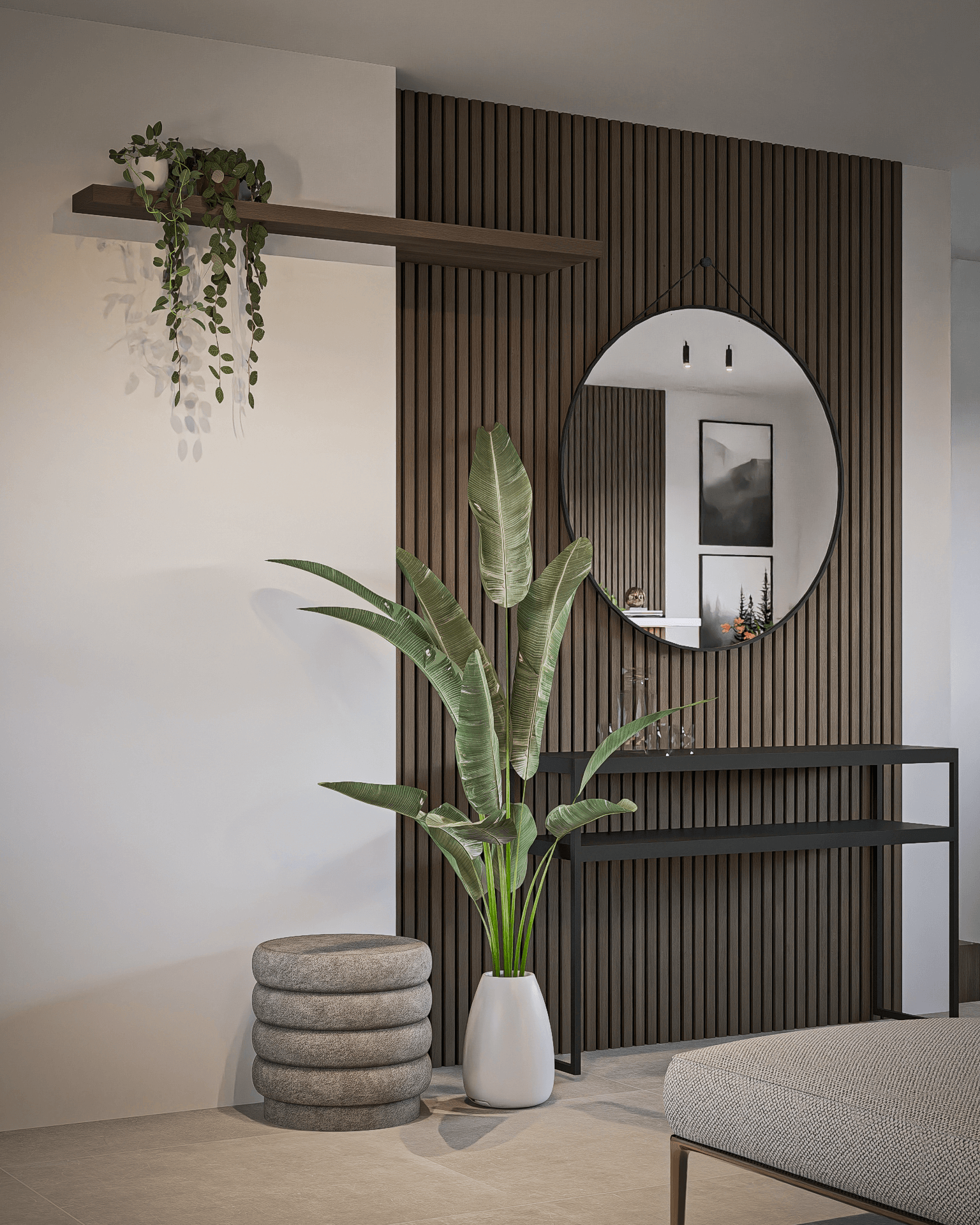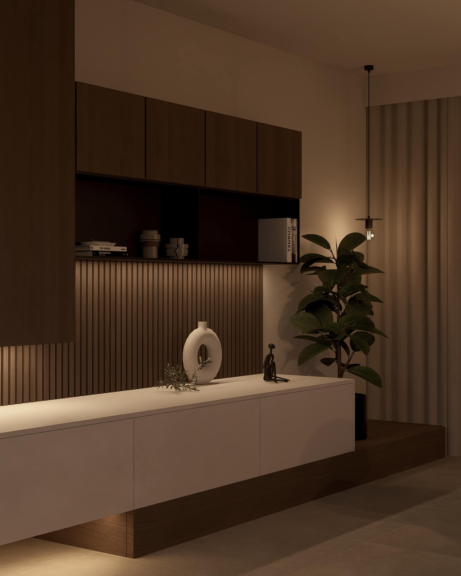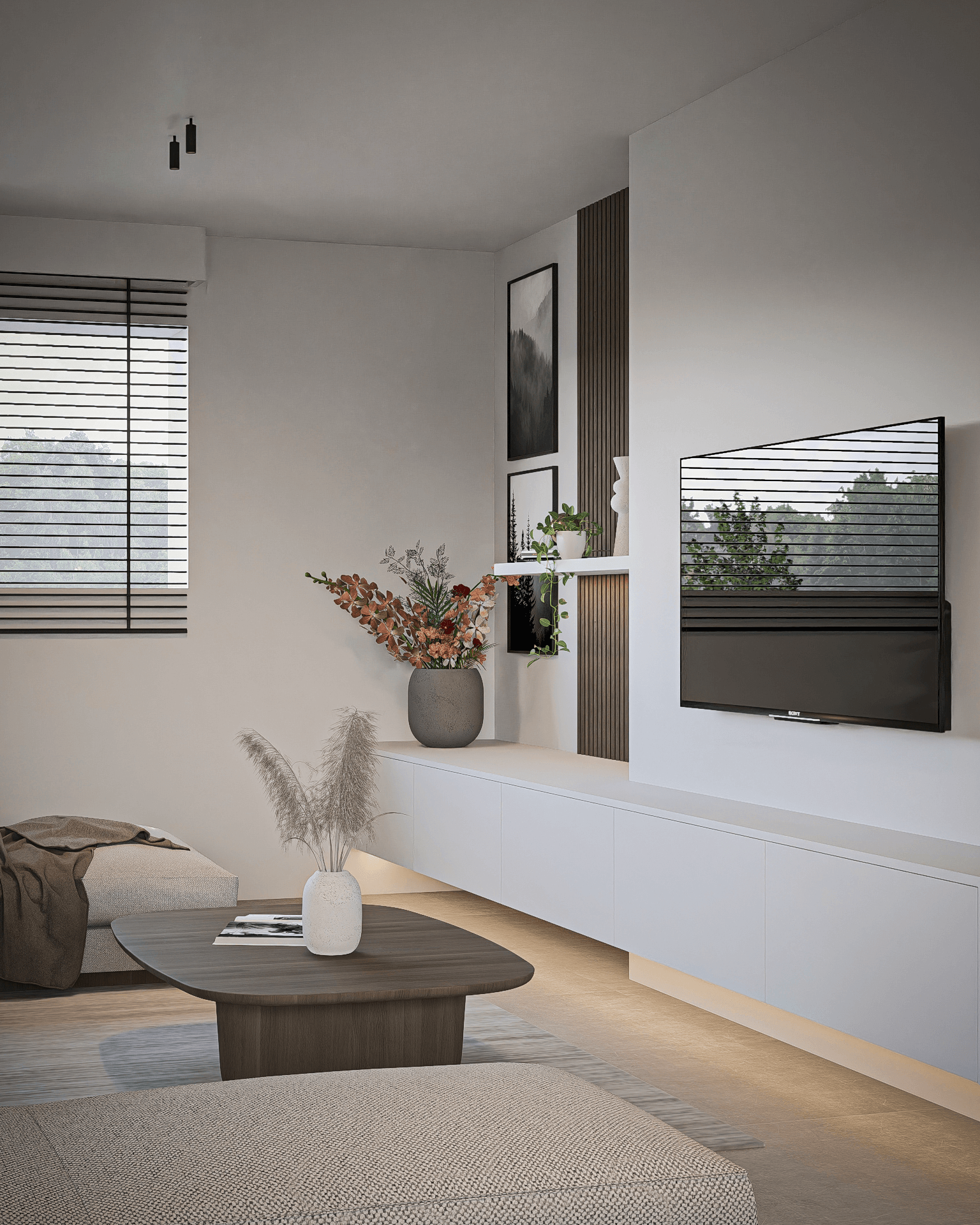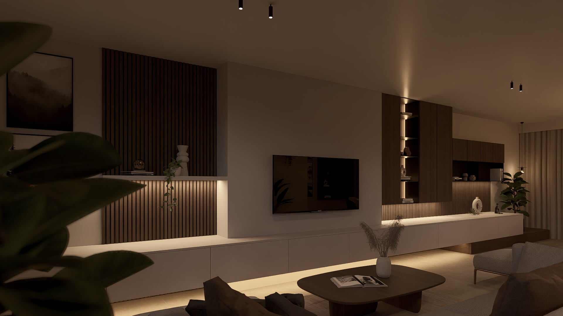 De klanten twijfelden nog tussen donker hout en licht hout, dus maakte ik aangepaste renders om beide opties te laten zien. Het resultaat is een warm en evenwichtig ontwerp waarin maatwerk en gezelligheid samenkomen.